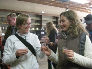 I hadn’t had moonshine since I tried the Russian version samogon, drunk straight, as a shot. I hadn’t liked it, and I didn’t think I would like moonshine. (My first experience ever being drunk was after several “7 & 7”s with Seagram’s Seven and 7Up, and I haven’t been able to drink whiskey since.) Still, I was excited to try. Doug and co-owner Amie St. Clair poured us shots of Straitsville Special and shots of pickle juice to chase them with. Russians use pickles for chasing as well, but a bite of actual pickle, not the juice. I exhaled forcefully as the Russians do and then sucked the shot down. The pickle juice chaser did help it to go down smoothly! I liked it.