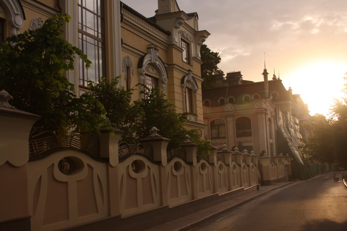 These homes were built to imitate historic buildings from an era gone by. Standing here I experienced the perfect dusk – it was warm, a gentle rain fell but wasn’t too bothersome and the sun shone through the clouds highlighting the colorful buildings. This ridge that rises prominently in this part of Kiev is covered with natural vegetation and at this time of day many couples were sitting in the green grass enjoying the last of the suns rays.