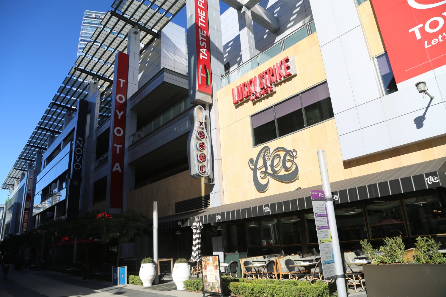 LA Live is a massive entertainment complex that cost nearly 2 billion located across from the Staples Center next to downtown. This is the largest entertainment complex on the West Coast and includes the indoor Microsoft Theatre and outdoor Microsoft Plaza, the Grammy Museum, a number of restaurants, bowling and an arcade.