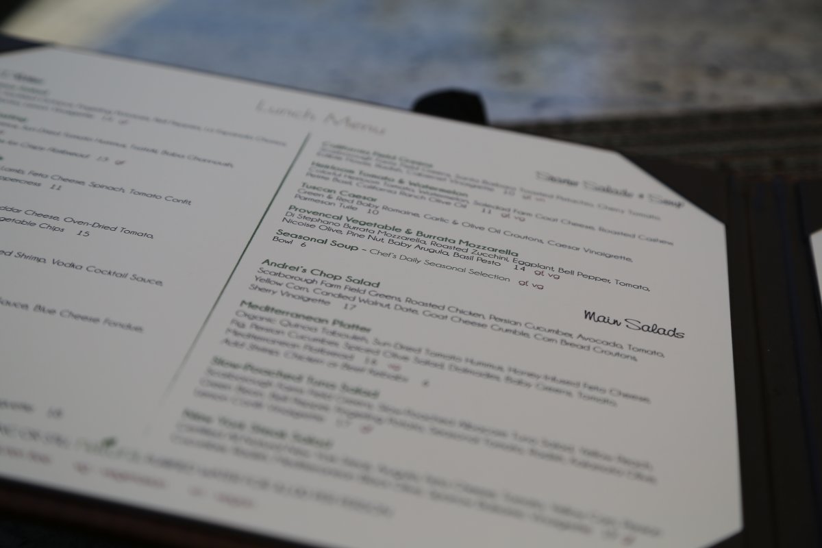 Andrei’s Conscious Cuisine & Cocktails is located at 2607 Main Street in downtown Irvine. Parking is available in the nearby parking garage; be sure to take your parking with you to have it validated by the restaurant. Inside seating, including at the bar or terrace dining is available. The menu is creative and features a number of freshly prepared dishes. Also seasonal menus available. Excellent salads including the Andrei’s Chop Salad.