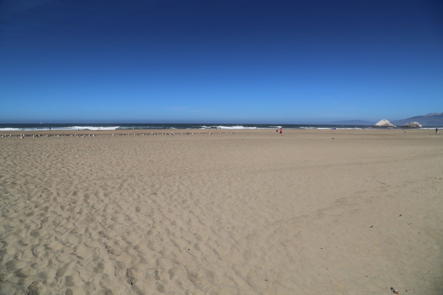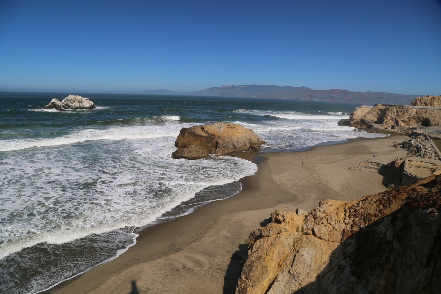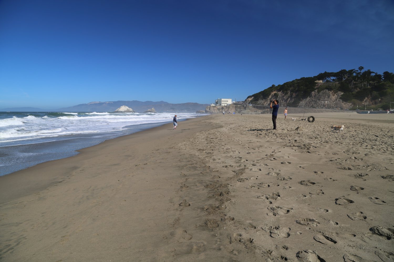 Ocean Beach is well worth visiting – this is a huge very wide impressive beach that runs along San Francisco’s west/ocean side from the Cliff House in the north all the way down to San Mateo County. From the lookout point near the Cliff House on a warm late summer’s day this area looks nothing like the rest of San Francisco – rather more like some of the beaches in Southern California. Surfers, dog walkers and when warm, sun bathers use this wide sandy beach.