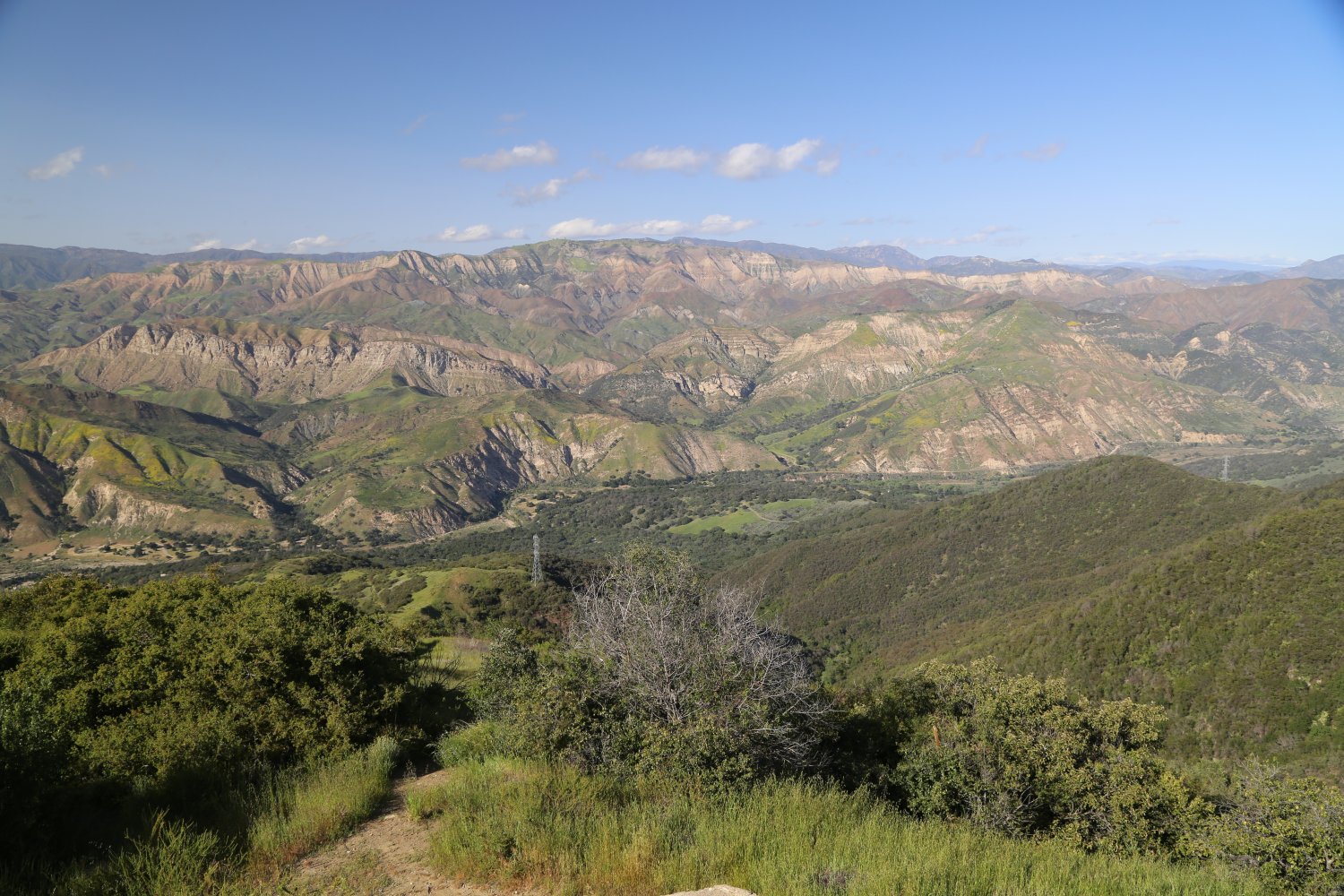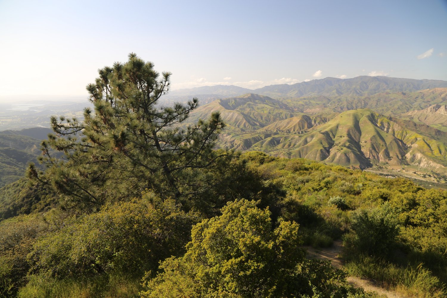 A hiking trail leads to the top from the dirt road. The Big Pine campground is also available 1/4 mile off of the dirt road. The vegetation at this height is quite a change from the sage and scrub of the lower lands. This mountain range is often covered in snow in the winter and can be seen on a clear day from the 154 just south of Lake Cachuma.