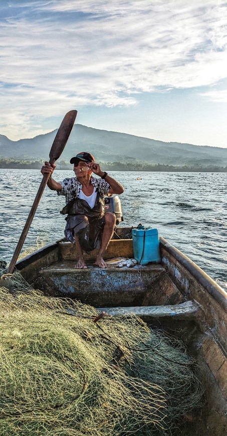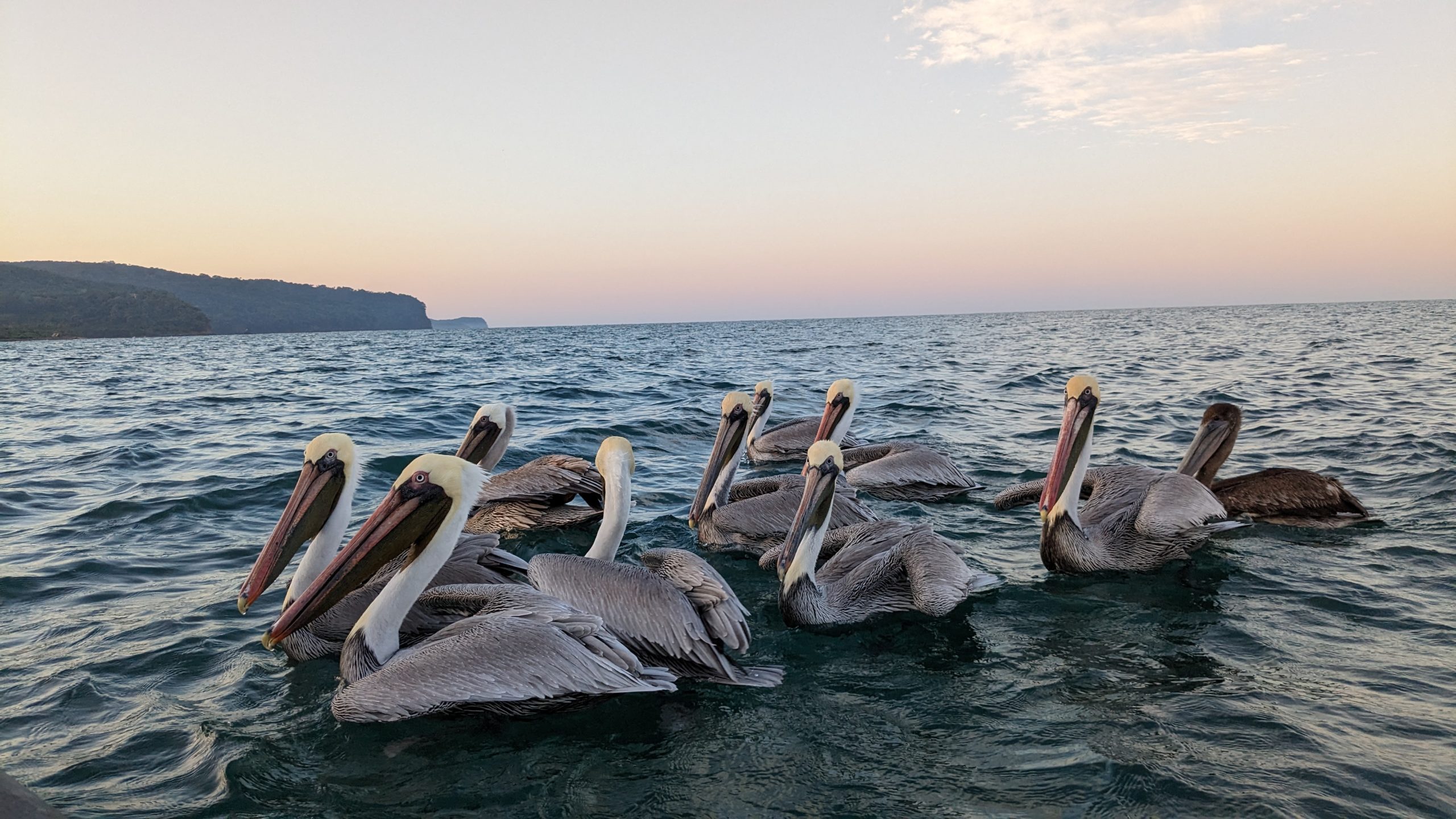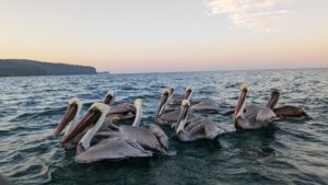 While Chaleo gathered his nets and picked out his bounty, a gaggle of pelicans or whatever gathered to beg for fish and go to war with each other over the inedible dead fish he tossed overboard.