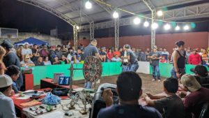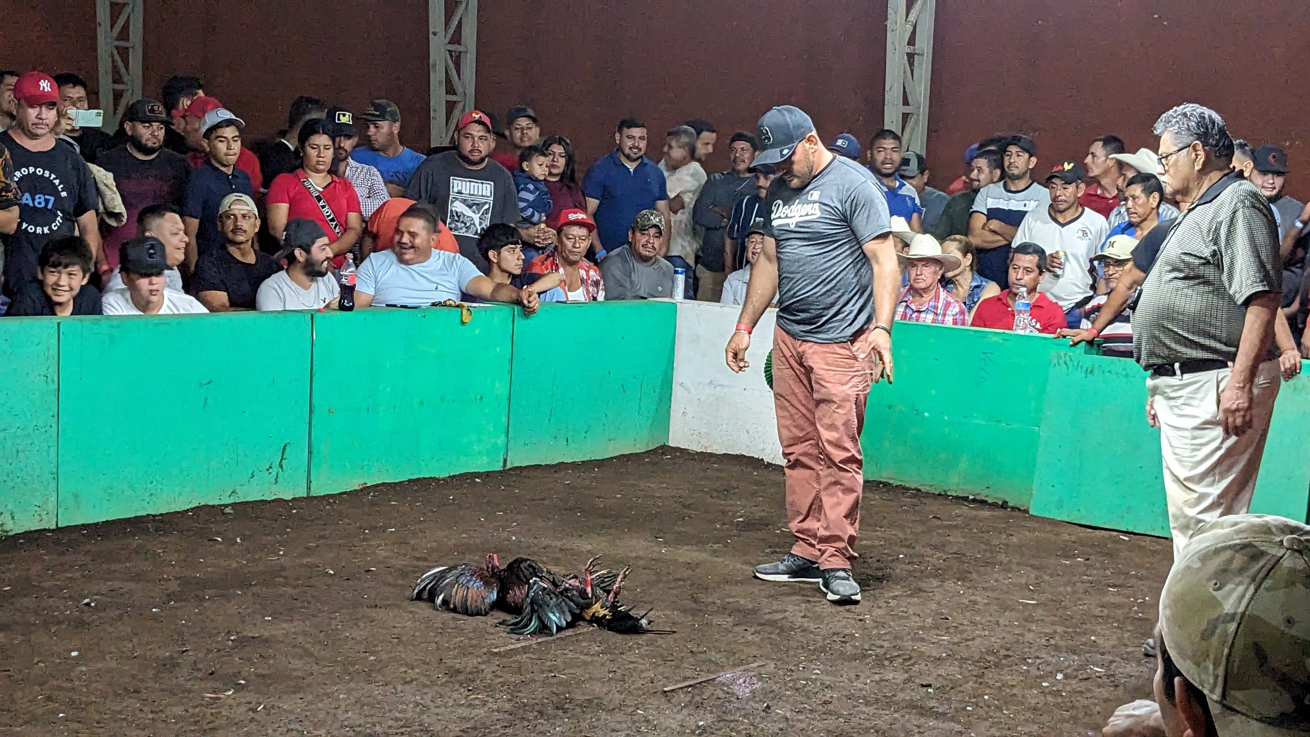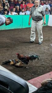 Above: A bona fide cockfight, during which farmers strap razor blades to the legs of their fighters and sic them on each other until one succumbs to their injuries, at which time they are tossed on the growing pile of chicken corpses in the corner of the auditorium. All the while, spectators chaotically exchange cash for bets.